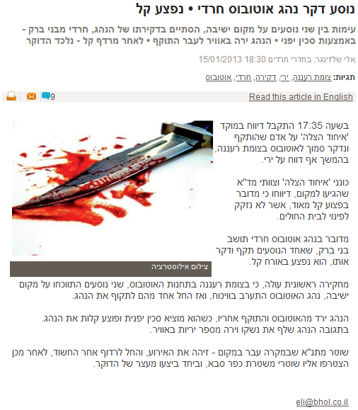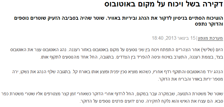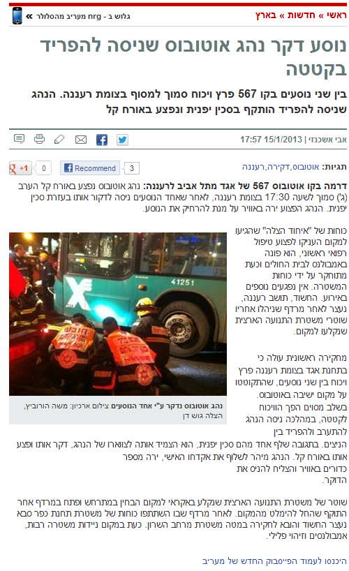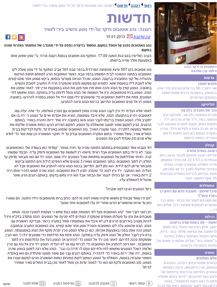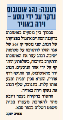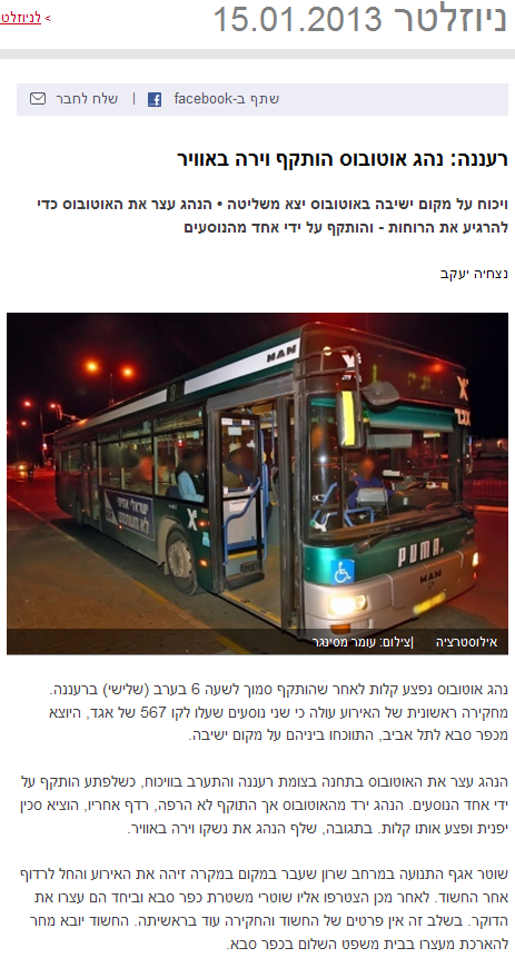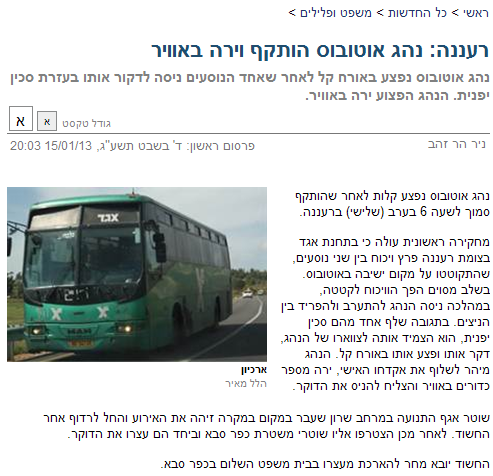 השתלטות על מעורער בנפשו שדקר נהג אוטובוס בצומת רעננה